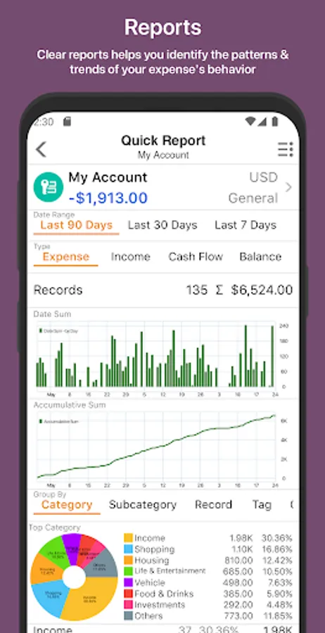 === Clear reports helps you identify the patterns & trends of your expense's behavior
