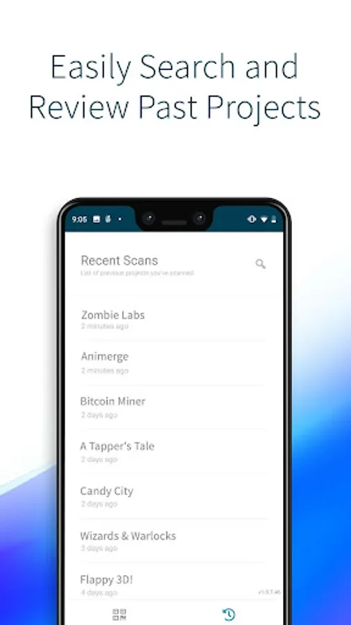 With this app, you can scan a QR code within AppOnboard Studio that allows you to save and preview your project on an Android device. Your projects will be saved to a history that you can then access to review or show others what you’ve created.