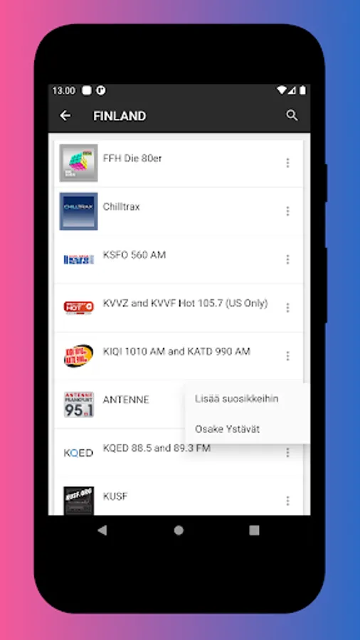 • Listen to the top FM radio (Finnish radio stations online, Radio FM) for free