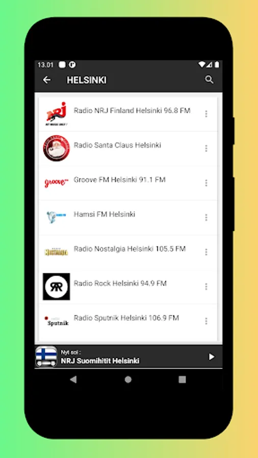 • Listen to Finnish radio stations abroad and any part of the world (you only need internet connection)