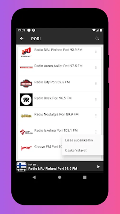 🔈🔈 Here is a list of some Finnish radio stations that you can enjoy in our radio finland App (some Finnish radio stations may not be heard, they may be off or you don't have your Internet enabled). 🔈🔈