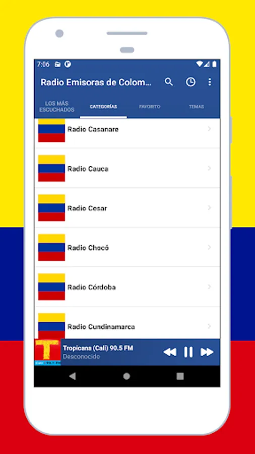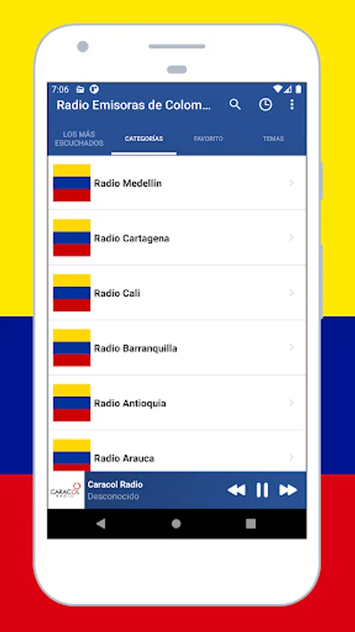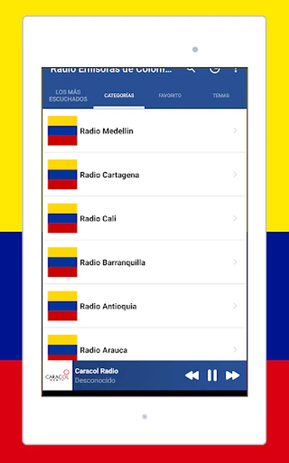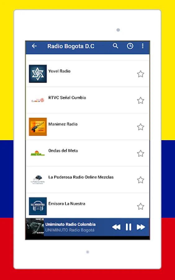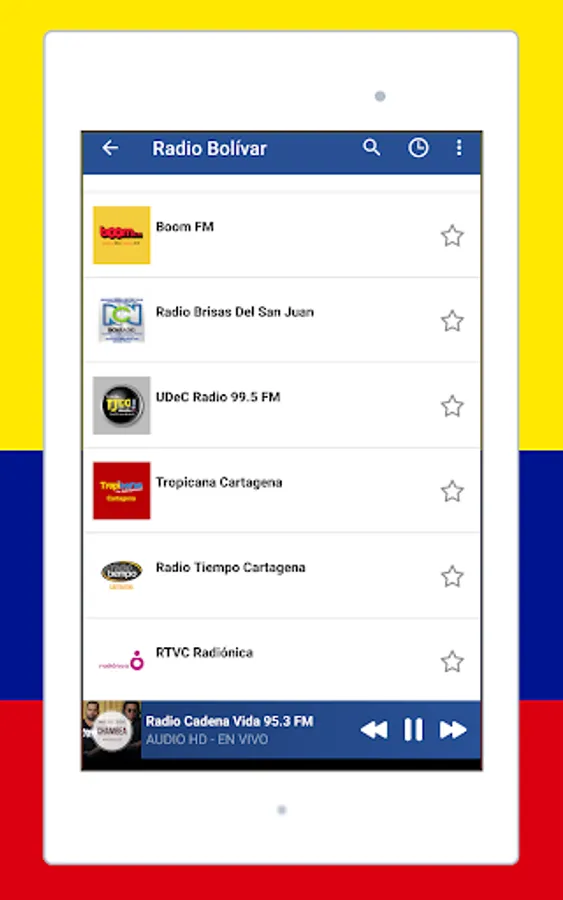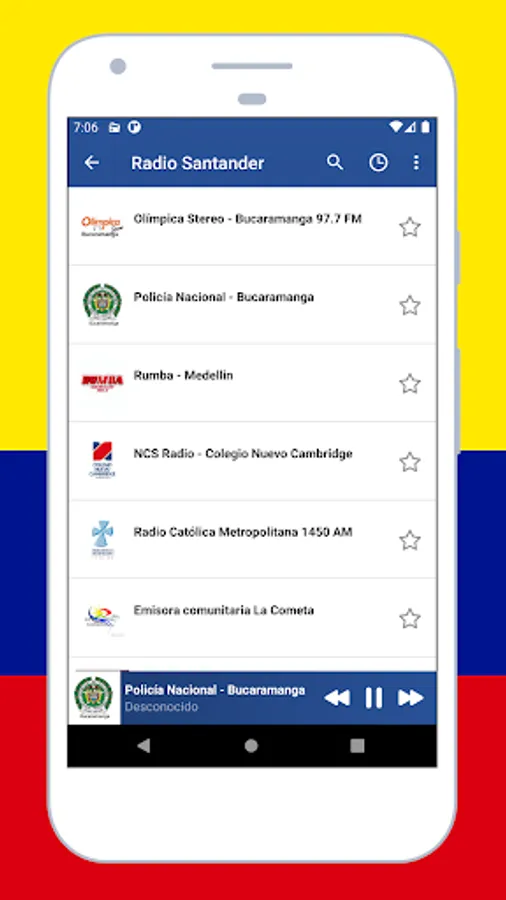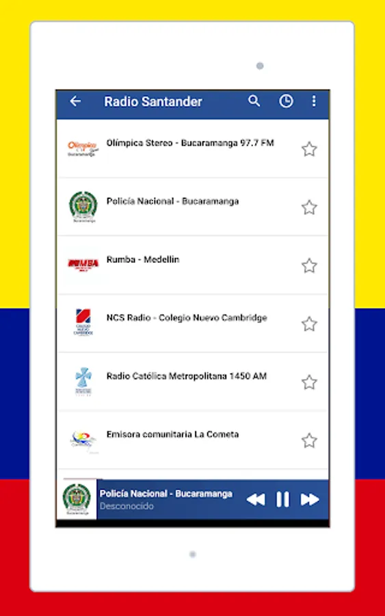 listen to music with the app Radio Colombia: Radio Colombia FM + Radio online an awesome application for android! listen to live radio, sports and news, colombia radio live, internet radio, colombia radio, free colombian radio, colombia am and fm radio, colombian music from all colombia similar to internet radio, anytime, anywhere. you can enjoy Colombian music from various frequencies and musical genres. radio colombia fm is the best live radio application to enjoy (free colombian radio stations, colombian football, sounds, sports, colombia am and fm radio stations, songs, audio, radio streaming).