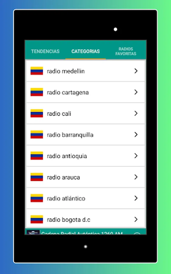 Do you want to have easy access to all your Colombian radio stations on your android phone or tablet? Do you want to listen to live music and many other Colombian radio stations for free? If your answer is yes, then Radio Colombia AM and FM is the perfect application for you now. Our free Colombian radio app is the best application of Colombian radio stations that will allow you to listen to live Colombian music, live Colombian radio stations, Colombian news, radio online, Colombian AM and FM radio stations, events of Colombia, newspaper Colombian, soccer Colombian, sports and talk radio stations throughout Colombia for free and from different cities such as: Bogota, Cali, Medellin, Cartagena and other cities in Colombia.