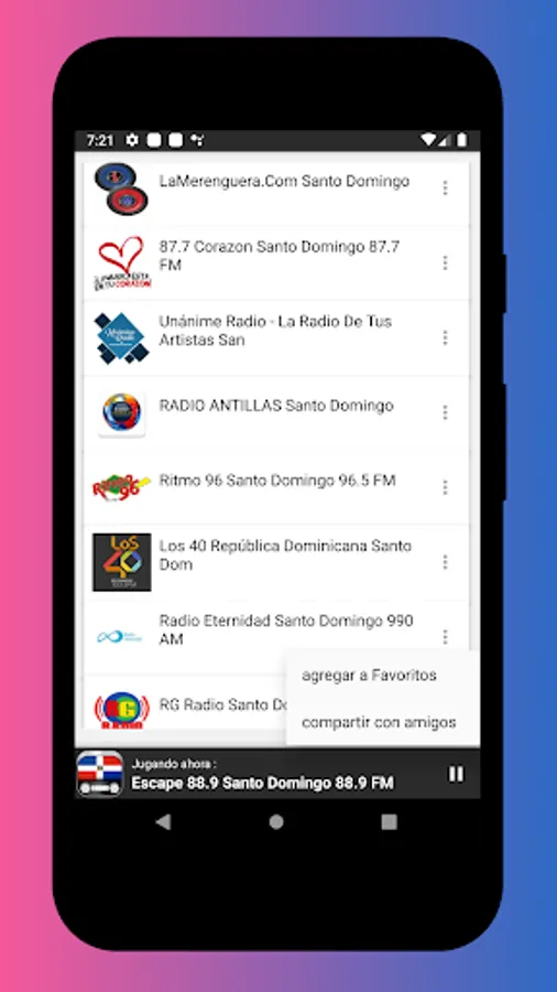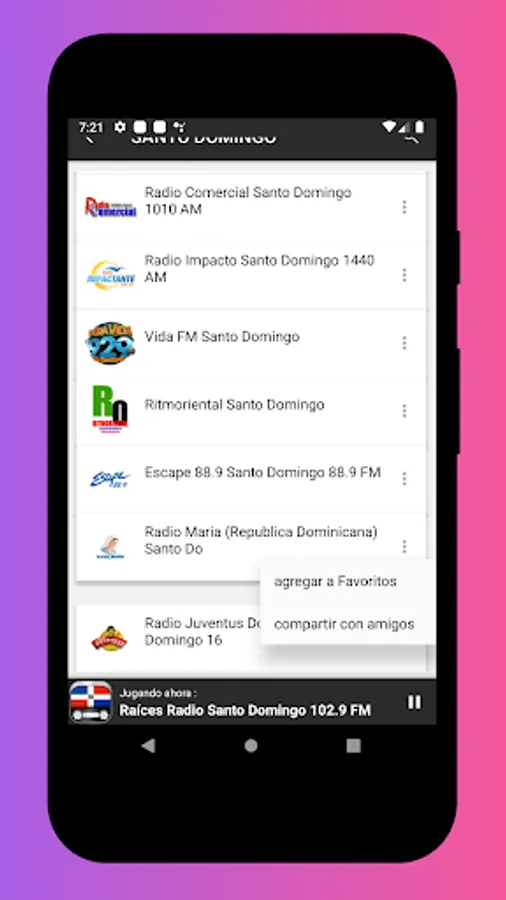 • Listen to Dominican stations for free abroad and anywhere in the world (you only need internet).