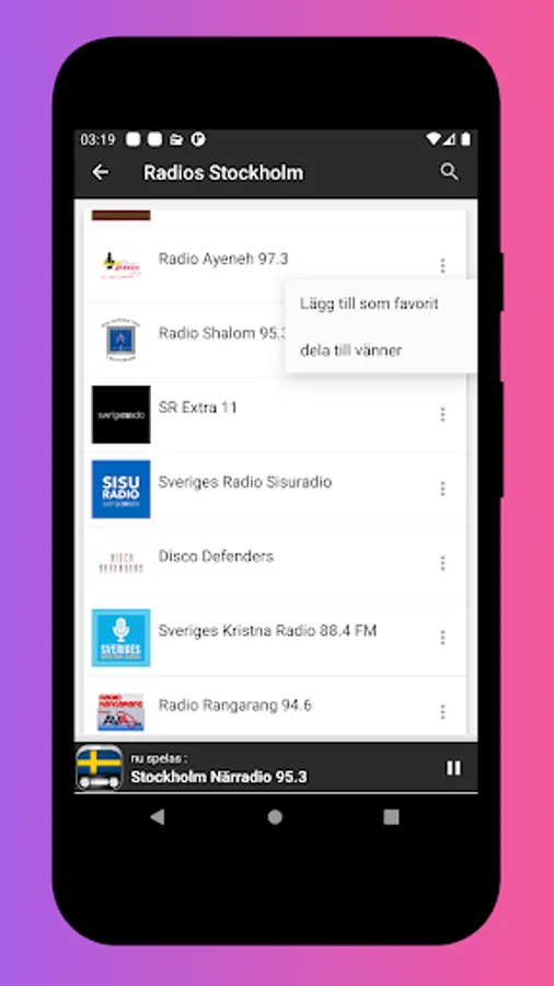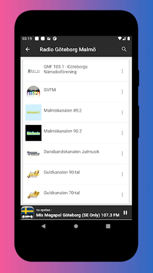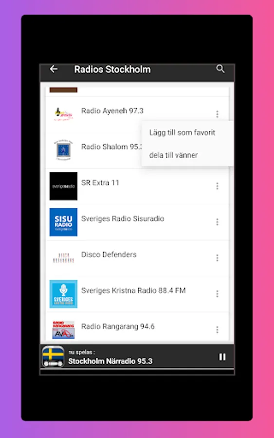 • Listen to swedish radio stations abroad and any part of the world (you only need internet connection)