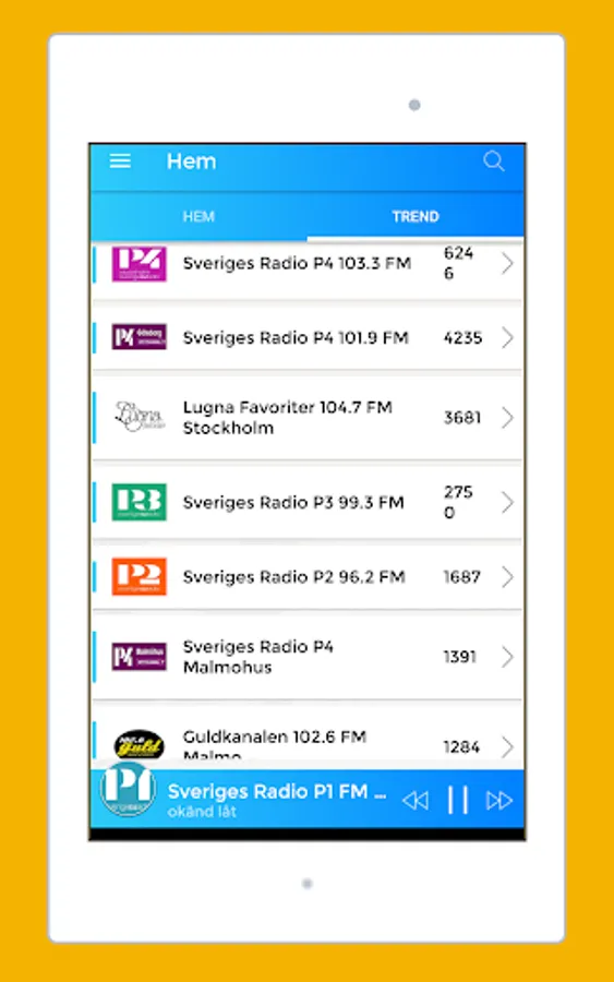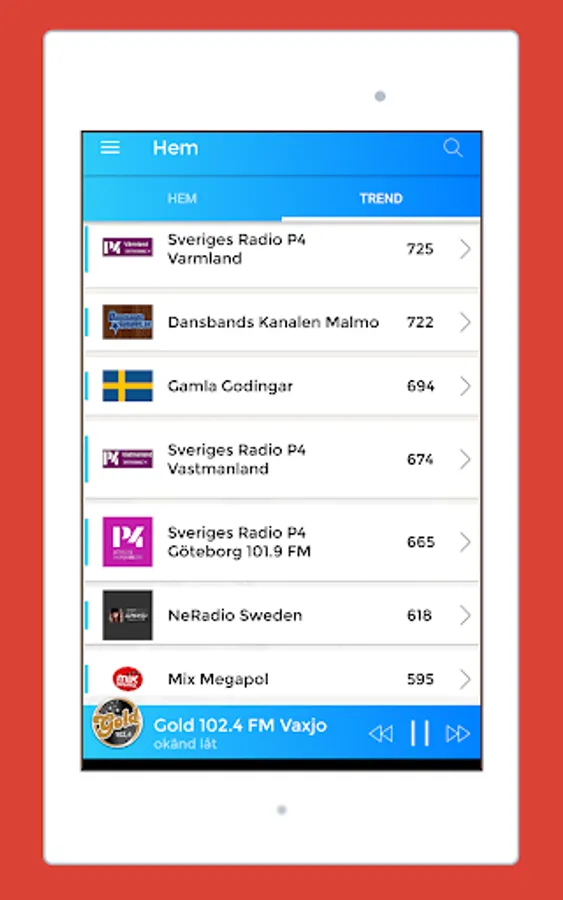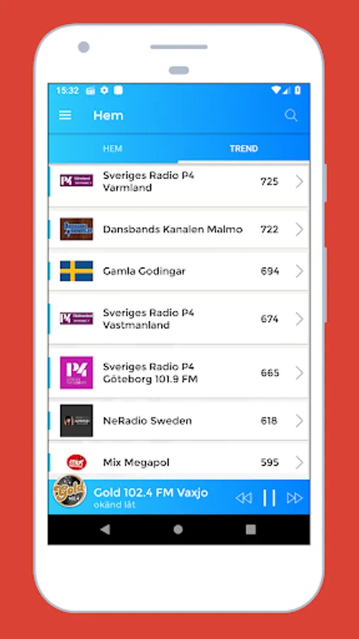 Download Radio Sweden now and start enjoying your favorite songs or podcasts from the swedish radio stations.