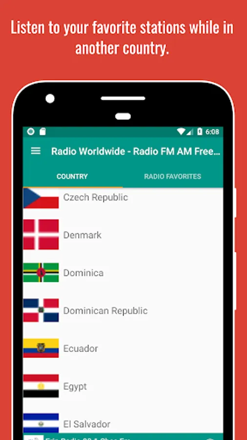 Examples of countries included in our Radio World App where you can listen to live radio stations in countries of the world, with internet radio technology and radio online.