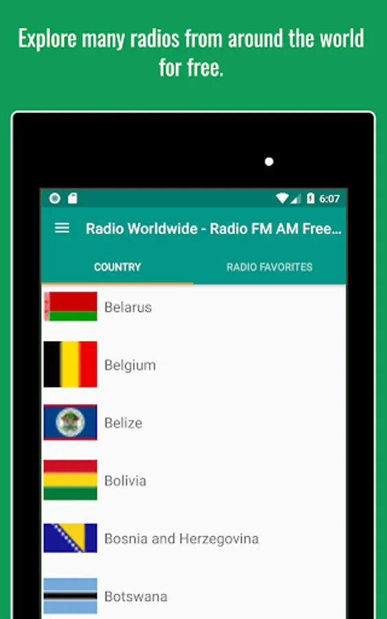 Radio World - Radio Online + World Radio Stations is a Radio World of radio through internet that requires a connection to internet that has as final goal to allow to listen to music live in the radio stations of the world, because the Radio World App does not work without internet. There may be some radio stations in the world that do not work or do not listen because it is off or not available.