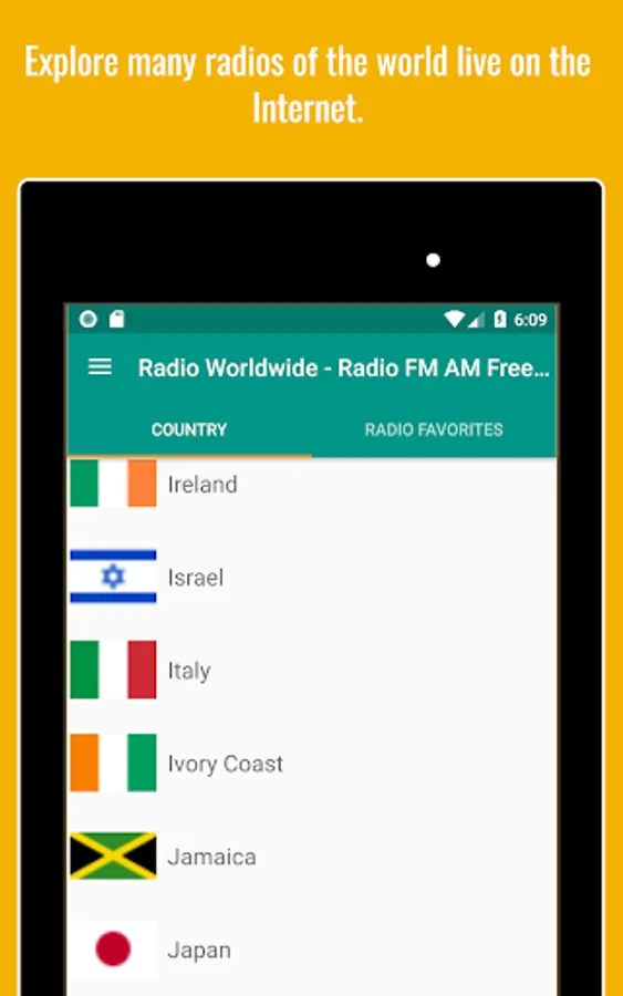 • Radio Online classified in a list of countries (free internet radio stations + world radio FM).