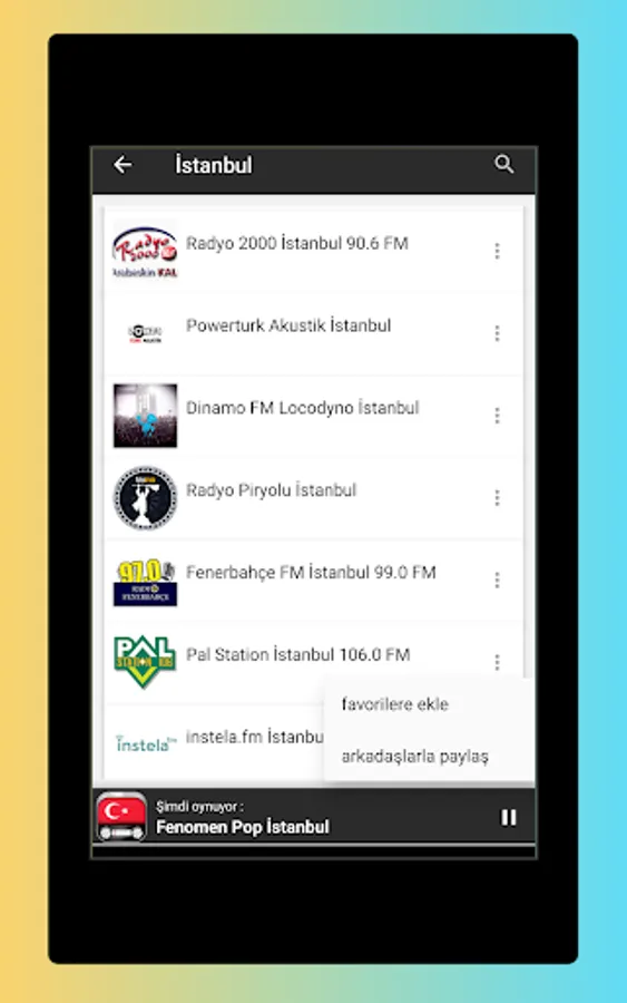 • Listen to the top FM Radio (all turkish radio stations online) Live.