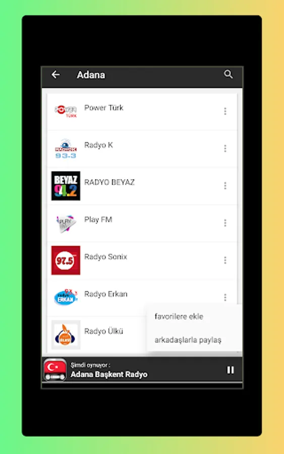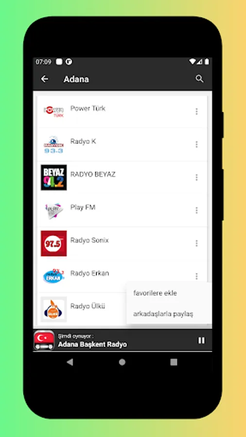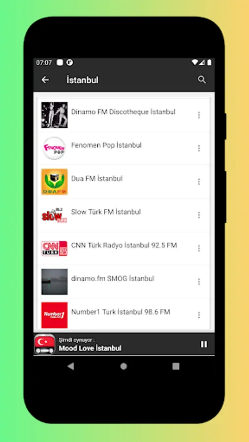 • Listen to turkish radio stations abroad and any part of the world (you only need internet connection).