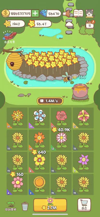 With the efforts of the owner, a new garden has been built for the forest animals, and there is also a small pond, flying little bees, and picking up sweet honey. In the garden, combine flowers in the garden to get more advanced.