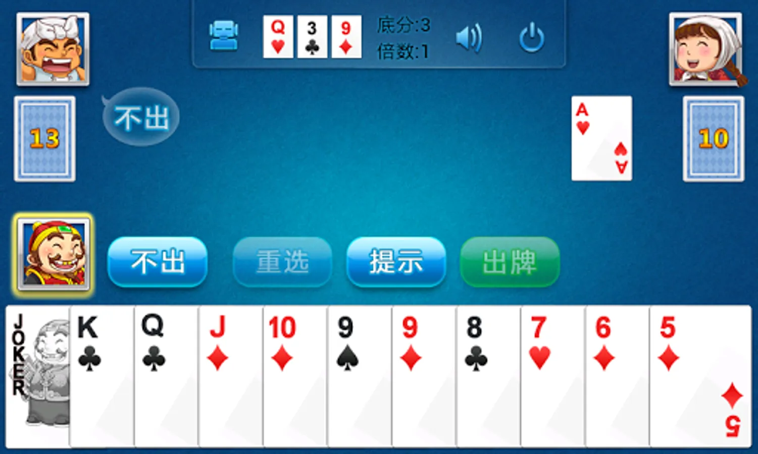 Landlords faithfully present this game of entertainment and challenge to the players, bringing you beautiful playing cards, powerful computer opponents, and superior game control, trying to indulge you with the least amount of action. Enjoy the fun of the game.