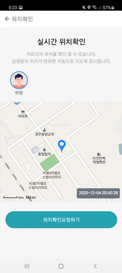 2. 실시간 위치확인: 치매어르신, 길을 잃기 쉬운 어르신의 실시간 위치 확인이 가능합니다.