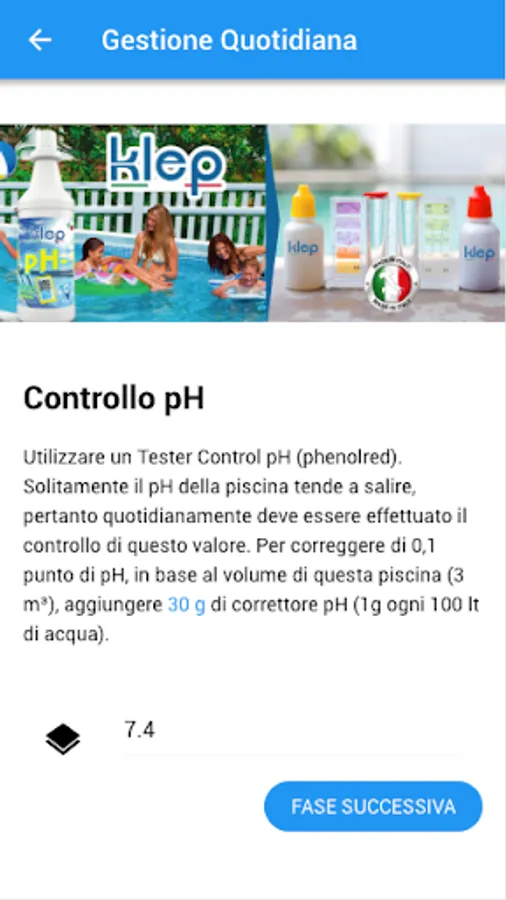 Just record the pool by choosing one of three available modes (reading the bar code by selecting it from a pool list or enter a size manually) to receive notifications and alerts to daily and weekly with tips and reminders related to cleaning and ordinary management You can also set the extraordinary maintenance of this season.