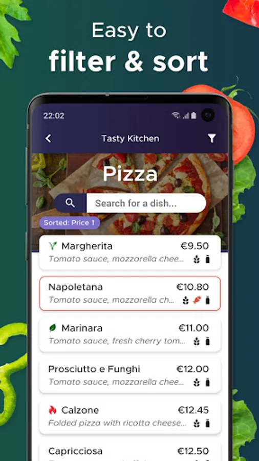 Would you like to filter the menu card for vegetarian, vegan or spicy dishes? Nothing easier than that!