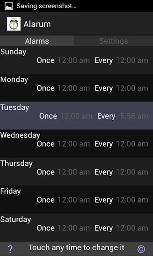 I get up at the same time most weekdays, except Mondays; but I don't need an alarm at weekends: Alarum lets me set each day independently, and once it's done, it's done. It's one less thing to have to remember.