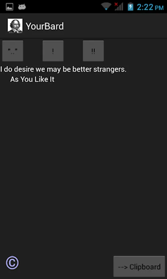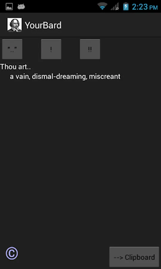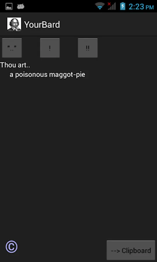 With the touch of a button you can have your own insult made to order, crafted from some of the finest Elizabethan swearwords, as well as pre-formed insults from a dozen plays; and with one more touch, copy it to the clipboard, so that you can use it yourself.