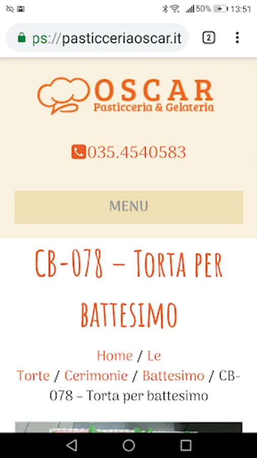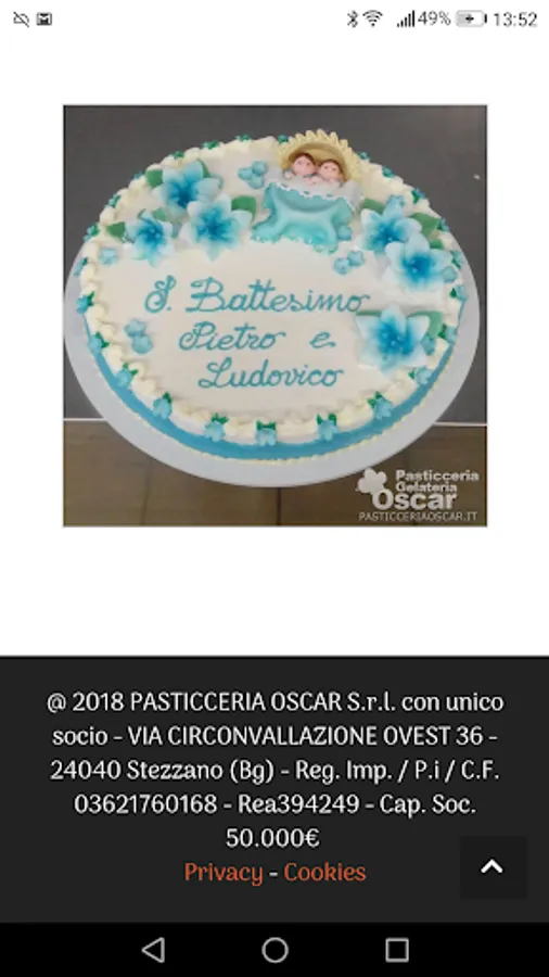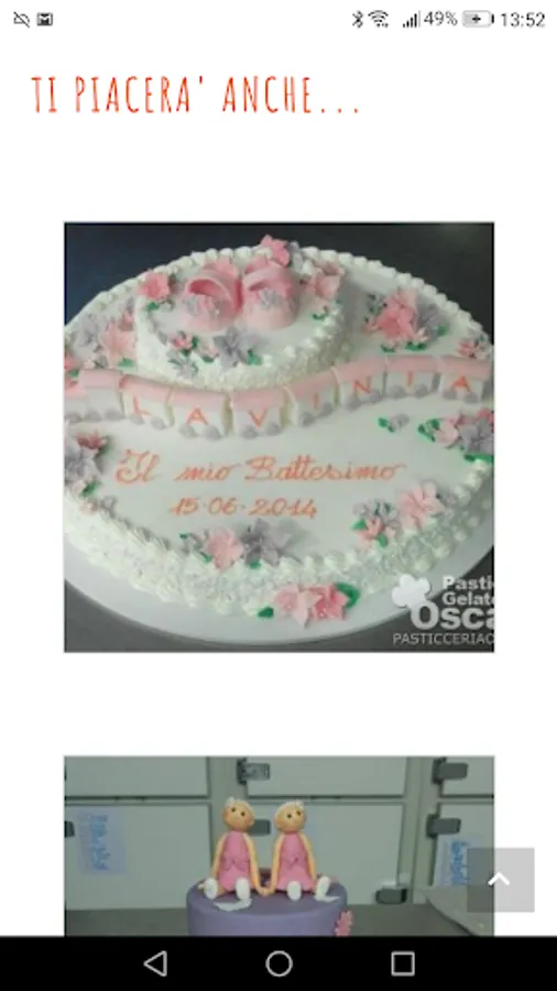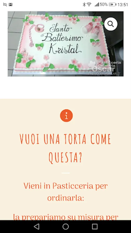 Pasticceria Oscar app, home display and related categories / subcategories and products.