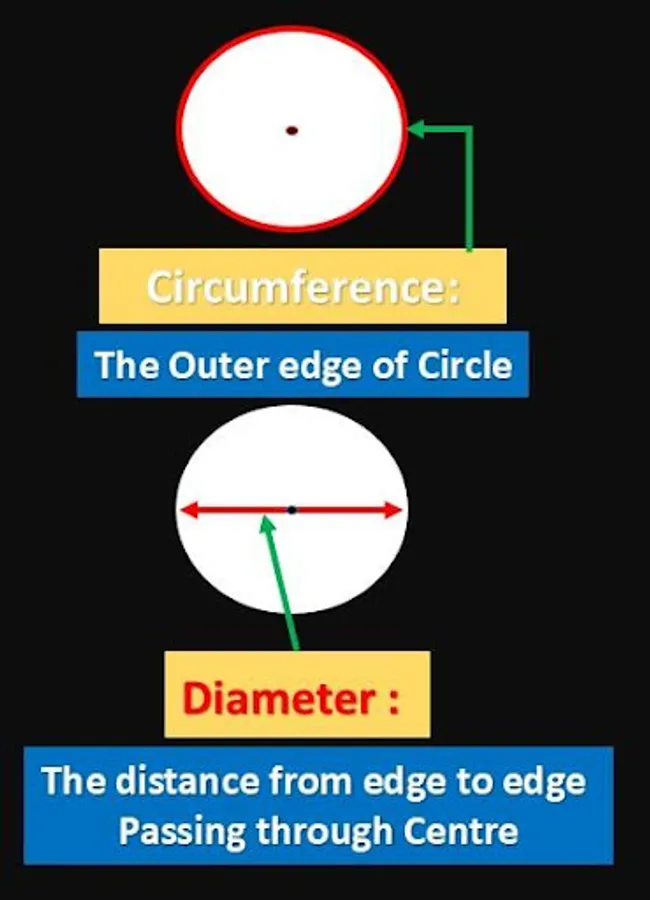 >Diameter: A chord that passes through the center of the circle. The length of a diameter is two times the length of a radius.