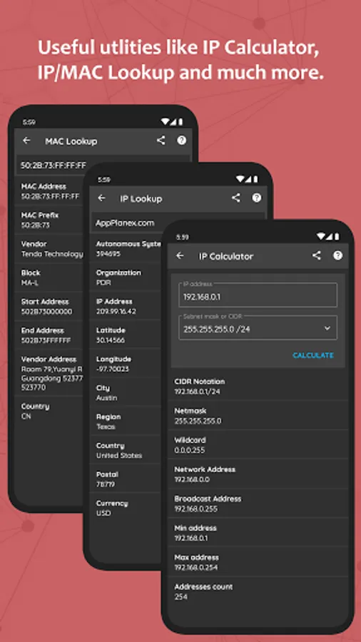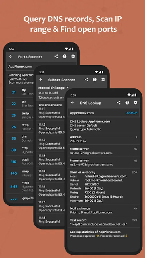 Ping Master: Network Tools app has following collection of Network Tools and IP Utilities.
