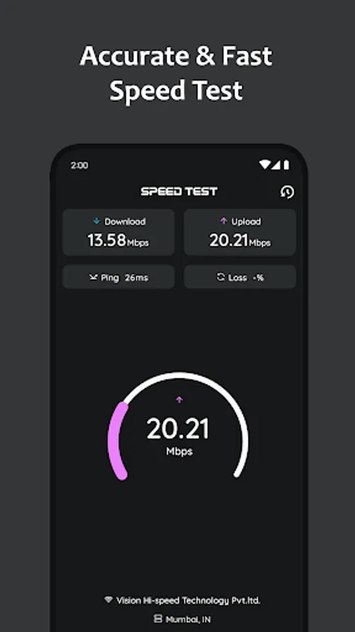 With just single click app will run speed test by connecting nearest server. it support Mobile (2G, 3G, 4G, 5G) and Broadband (DSL & ADSL) connections.