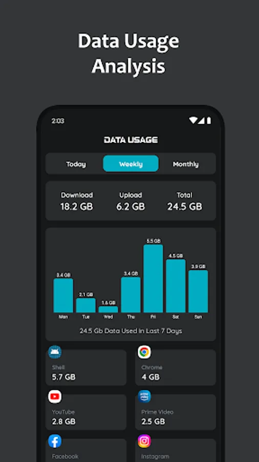 With use of Data Usage Analysis one can know how much data used by the particular app. This can help to know which app are using most of data.