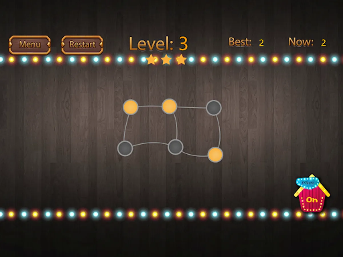 You ready? Welcome to this strategy game that is both fun and challenging! In the game, players need to turn on all the lights at the same time. Clicking on a light turns the light on or off sequentially, and also affects the surrounding lights. This requires you to skillfully apply your strategic thinking and the ability to control the lights!