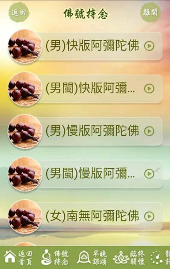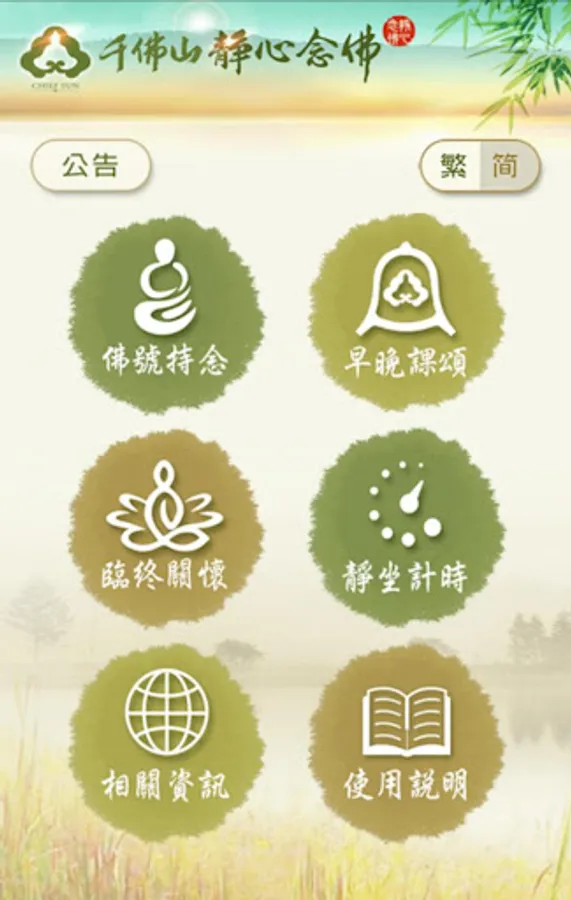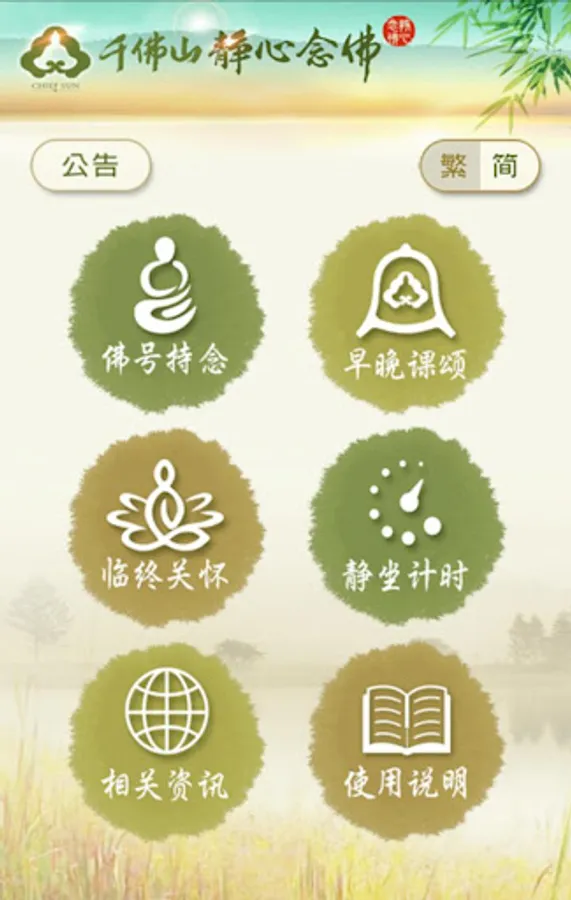 這款實用軟體可方便依照個人的條件及環境的配合來修持使用,提供繁體及簡體中文版本,幫助使用者在喧擾的塵世中尋得一方清靜,提昇安定內心的力量,時時輕安快樂。不僅在現世中可得到利益,增長更多的善根,也能聚積更多來世往生善處的資糧。