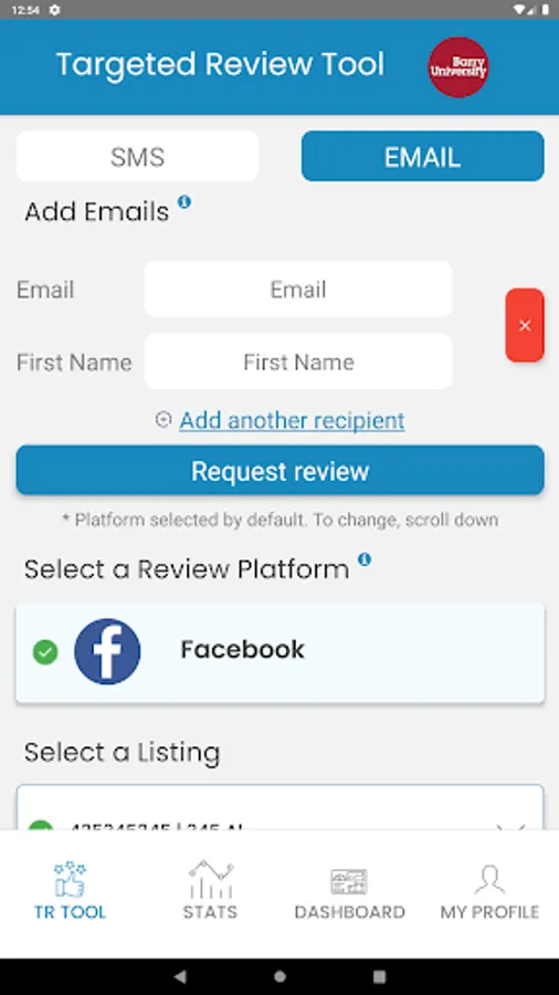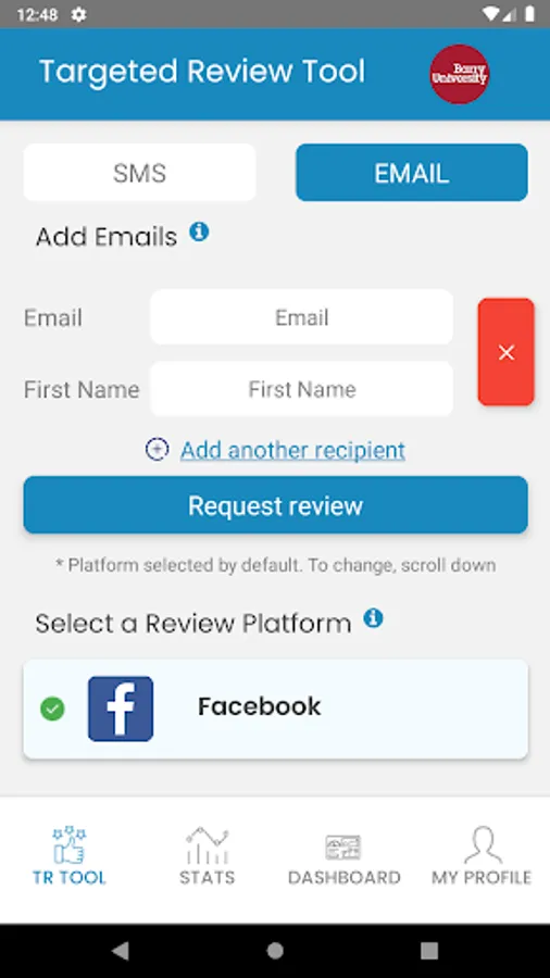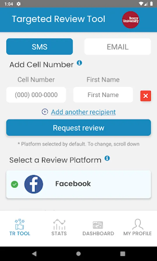 The TRT app allows you to request online reviews using text(sms) or email. Also tracks patients follow through and other online marketing activity.