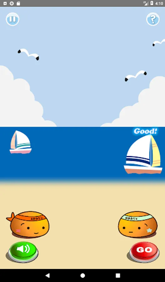 In this app, two sounds are played at the same time, but the decision is calculated on the basis of just intonation.