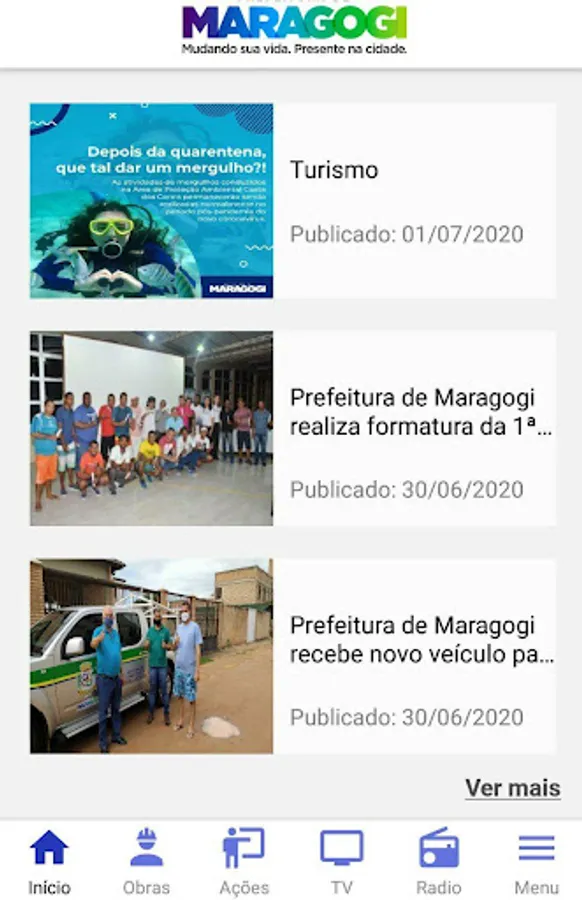 In the Maragogi City Hall application you can find all the works that were done in the city and those that are in progress, watch videos, and have information on all the actions that have been carried out in the city and in the villages.