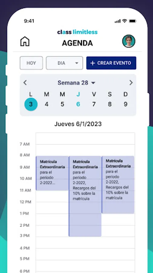 - Agenda: allows the student population and teachers to be kept informed about the institutional events agendas, as well as the different events and tasks that each teacher can create for their assigned groups.