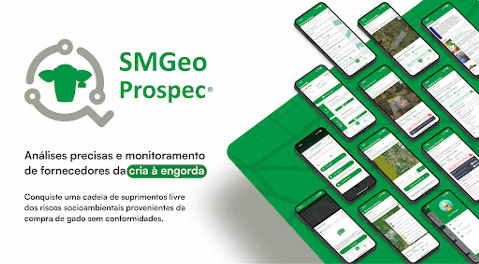 SMGeo Prospec is an application that allows rural producers and other interested parties to carry out socio-environmental analyzes of their properties and, during the prospection for the purchase of animals for breeding, rearing or fattening, check the supplier properties based on the main protocols and policies of sustainability in the market.