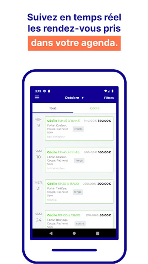 - Follow in real time the appointments made on your agenda