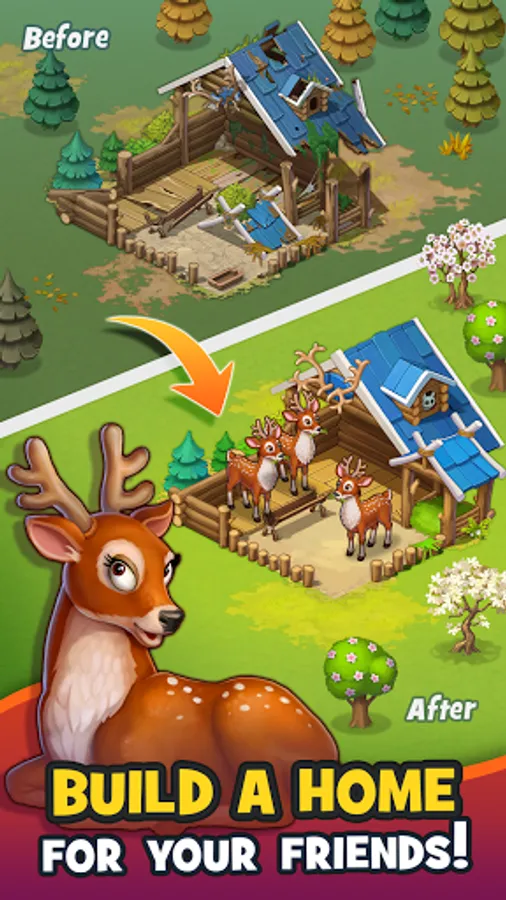 Want to get away from the noise of the big city? Always dreamed of having lots of animal friends, but never had the time or space? Cute Animals will make your dreams come true! Live in a vast green valley. Restore abandoned buildings to house fascinating animals from all over the world! Take care of them, create new breeds, and get ready for fame and prosperity!
