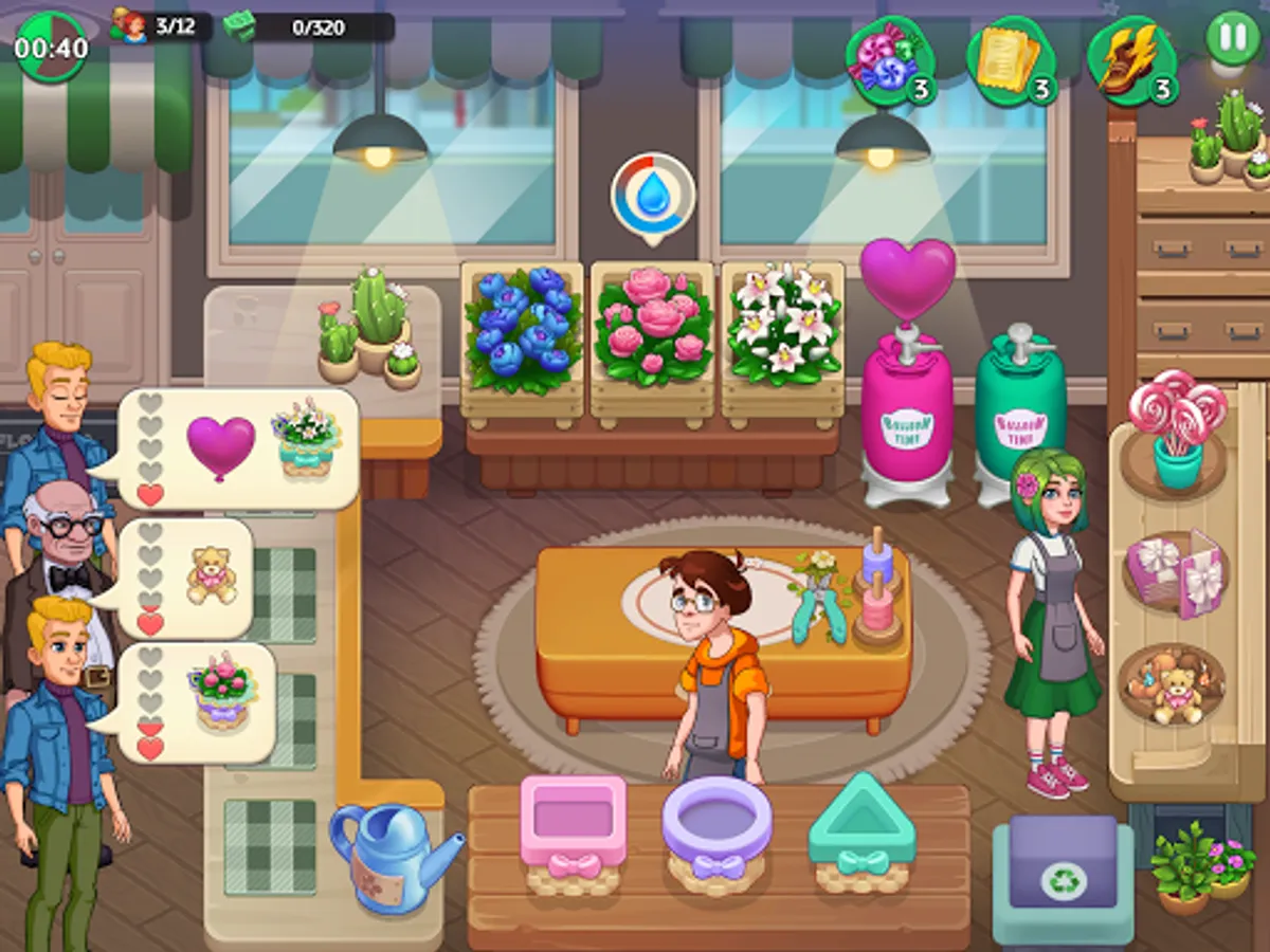 Being the boss isn't easy! Use boosters to help with difficult levels and progress from running a small shop on your own to owning the fanciest flower shop in the country!