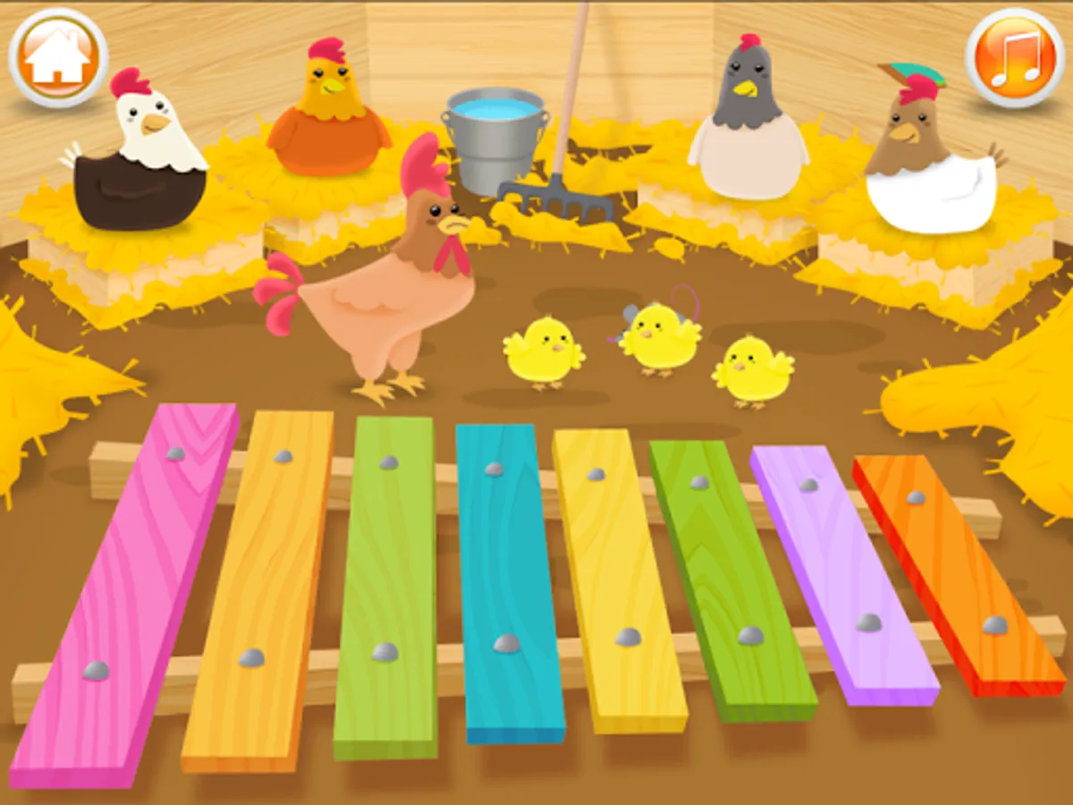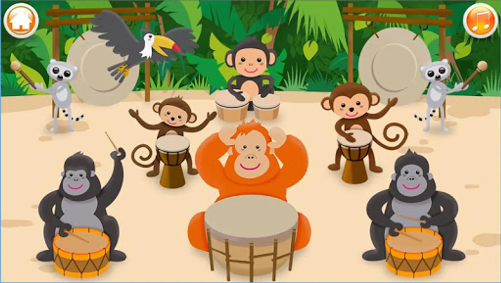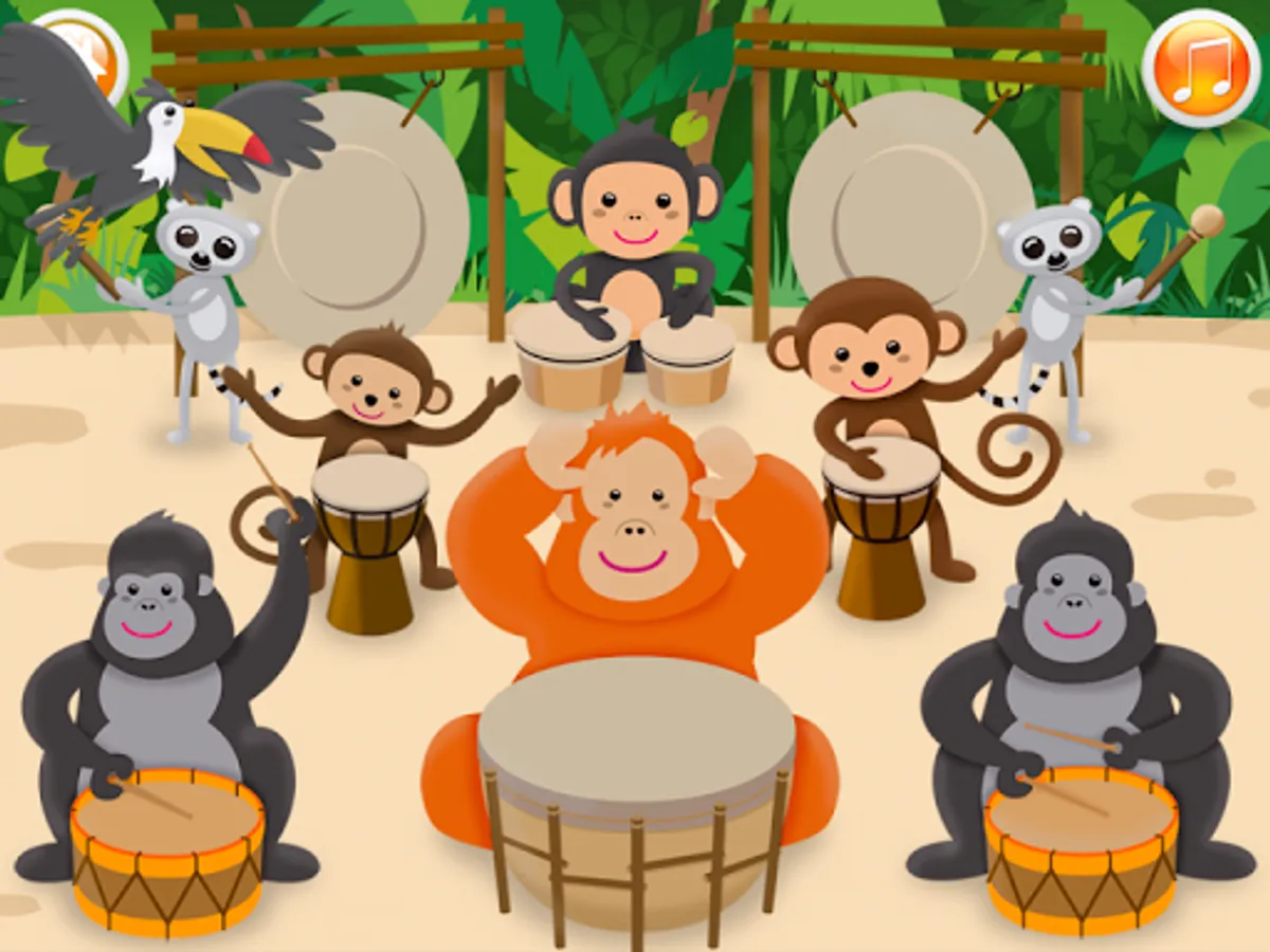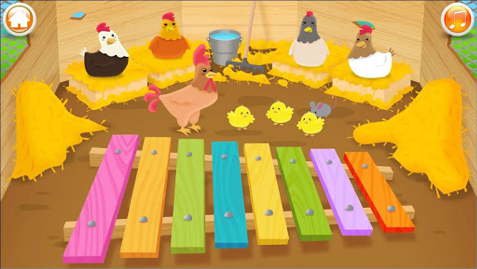 Scenes of different musical instruments with exciting performances by the cute animals cultivate and train your baby's mind to recognize the different sounds and learn to play the most popular musical instruments: xylophone, piano and drums.
