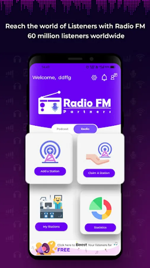Radio FM Partners app is specially designed for radio broadcasters and podcasters to manage their online radio stations and podcasts with ease.