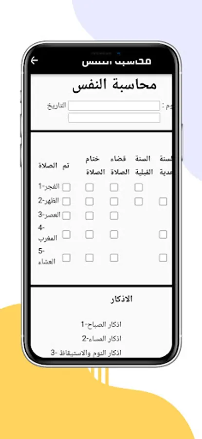A table is available in the application to determine prayer times and self-accountability to assess yourself at the end of the blessed Ramadan