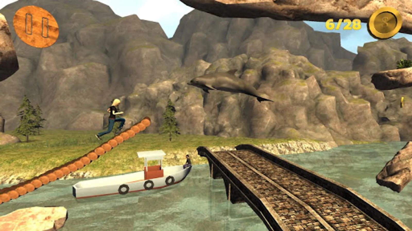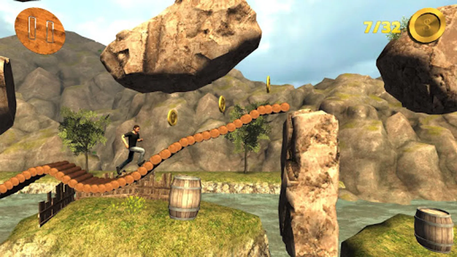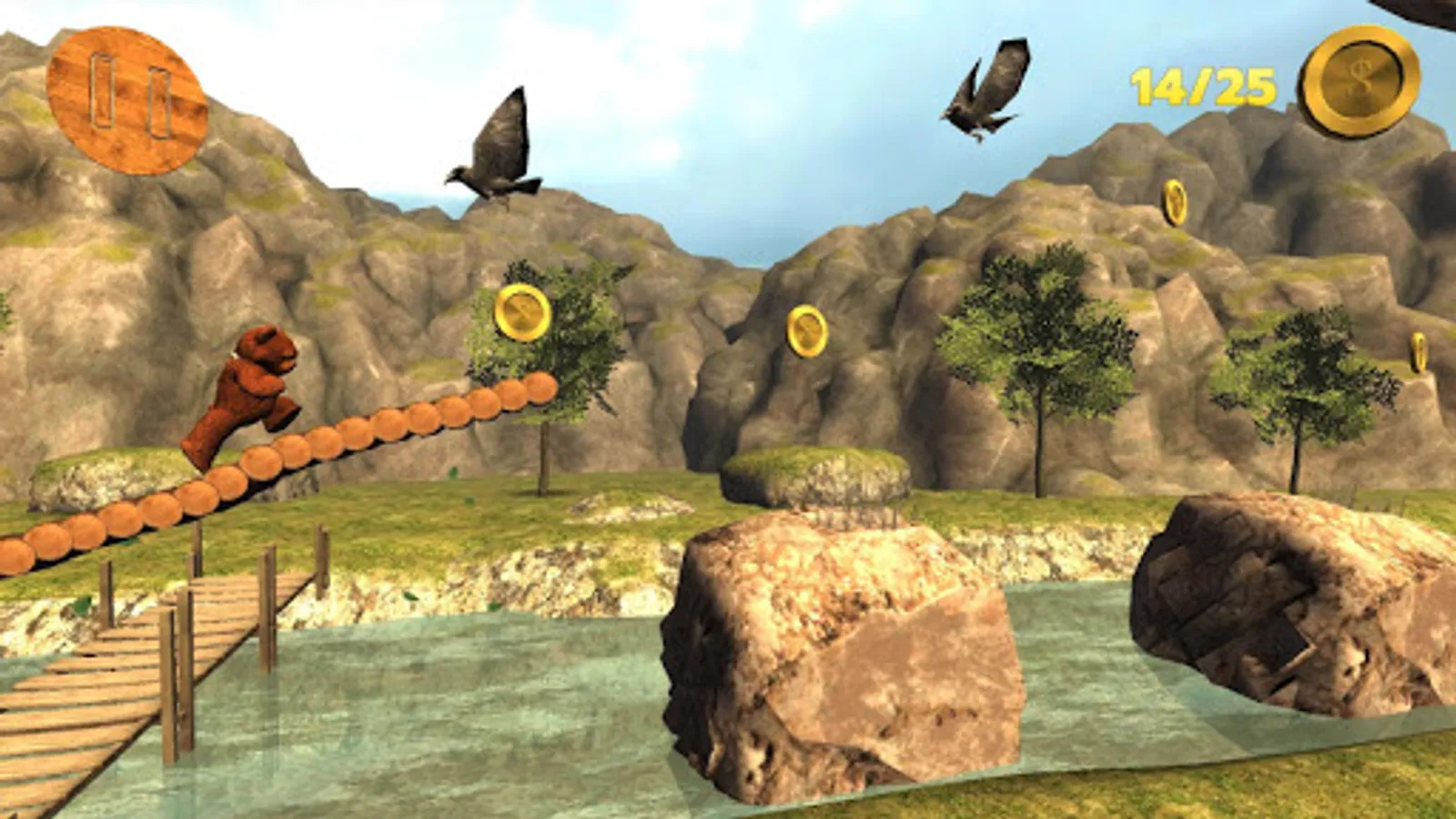 Try to collect the coins and avoid hitting platforms or falling to the river.