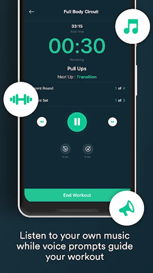 Simple, Customizable, and Easy-to-use. Create any workout you can imagine in a matter of seconds & play your own music in the background!