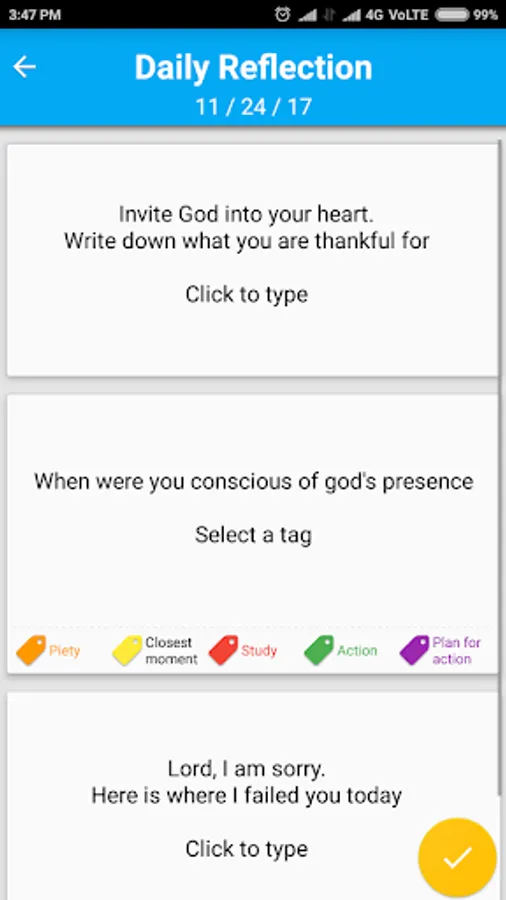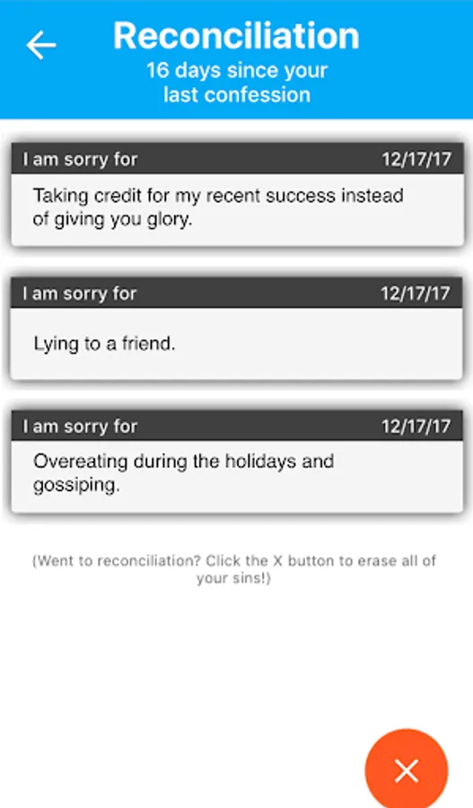 Use our daily reflection feature to keep track of your sins. Tracks how many days since your last confession. Examination of conscious included in the app. Information is password and PIN protected.