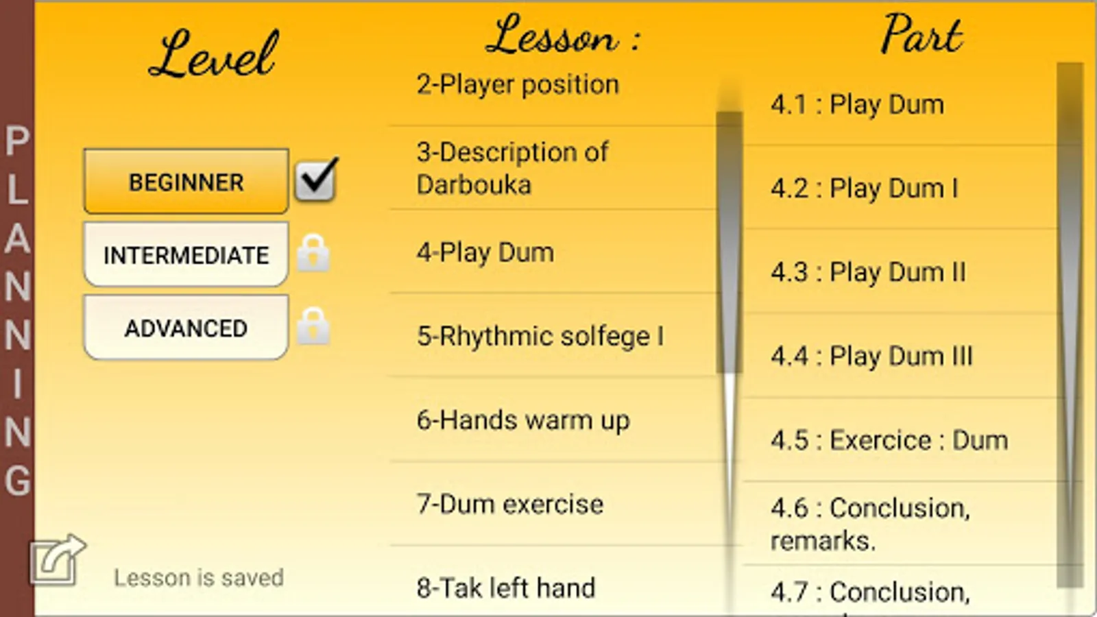 - مع هذه الدروس سوف نتعلم اللمسات الاساسية على الدربوكة و الحليات بشكل مبسط و سنتعلم أيضا الصولفيج الإيقاعي اللذي يساعد على عزف كمية مهمة من الإيقاعات