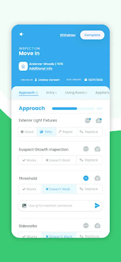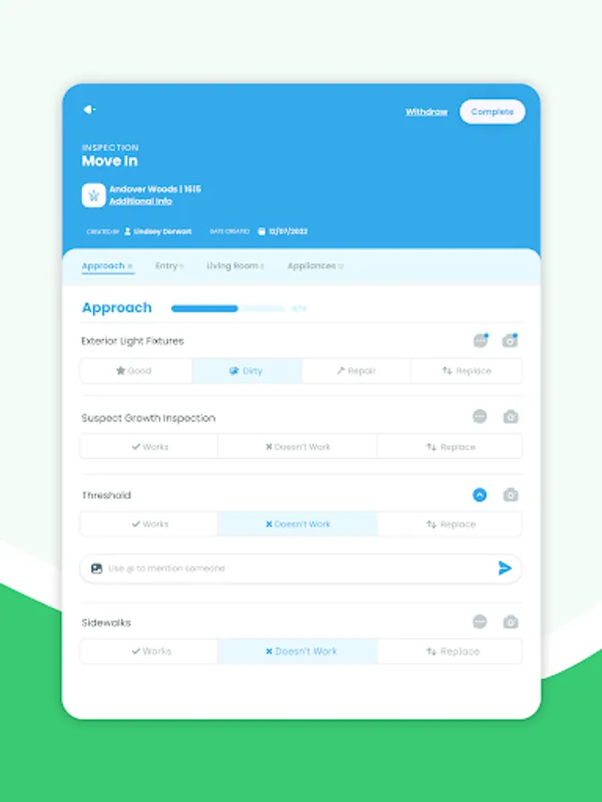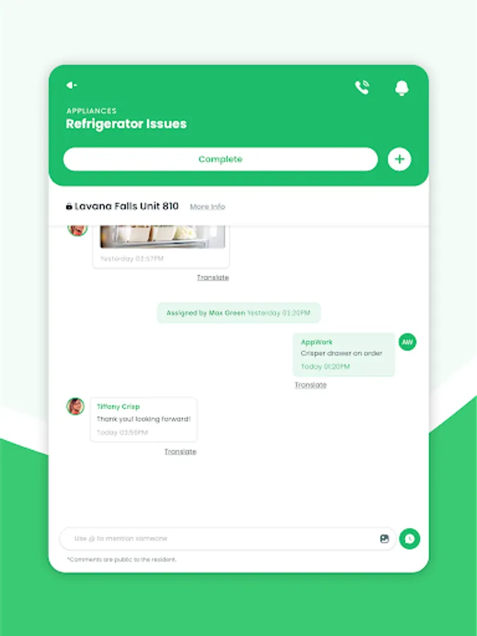 Also, through the app, they can contact the residents, upload photos, make comments, and mark work orders, make readies, and inspections as complete.