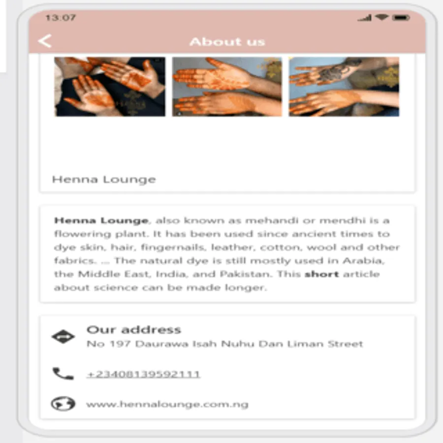 Henna Lounge, also known as mehandi or mendhi is a flowering plant. It has been used since ancient times to dye skin, hair, fingernails, leather, cotton, wool and other fabrics. ... The natural dye is still mostly used in Arabia, the Middle East, India, and Pakistan. This short article about science can be made longer.