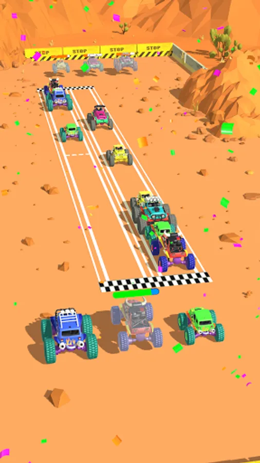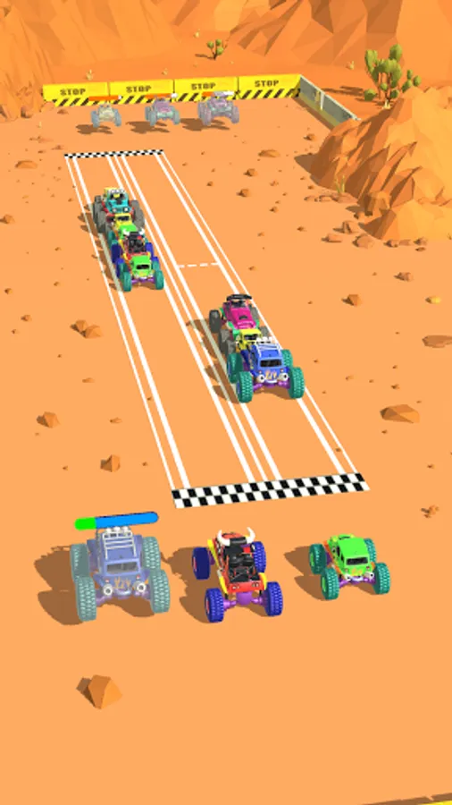 Merge two monster trucks that are the same size to create bigger ones, the bigger the better.