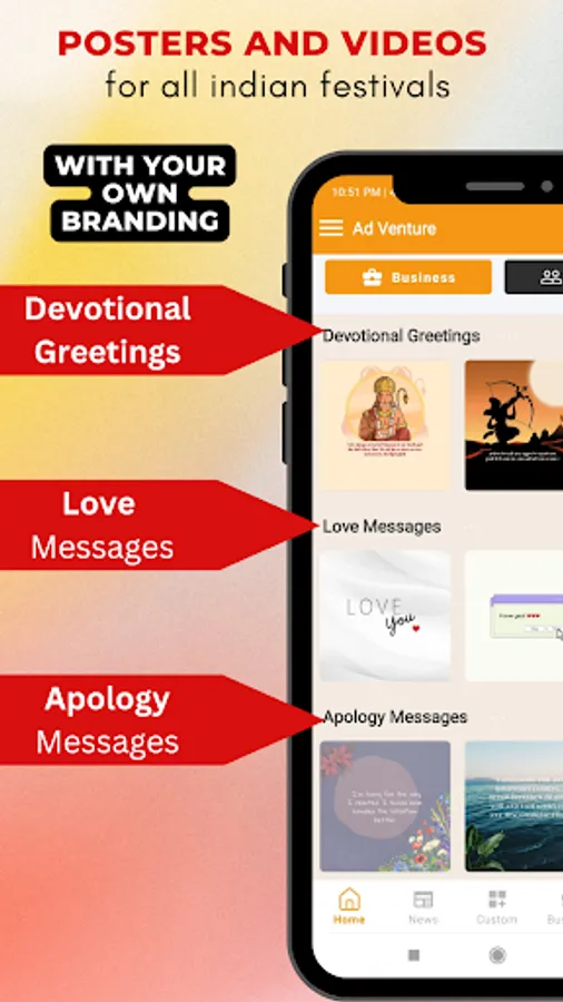 Ad Venture is a versatile poster maker and festival & brand poster maker app that allows users to create customized festival posters, festival post and business & brand advertisements with ease. With a variety of business categories and pre-made templates to choose from, users can quickly and easily create perfect festival posters and business posters that are sure to catch the eye of potential customers. The app is a banner maker and flyer maker app as well.