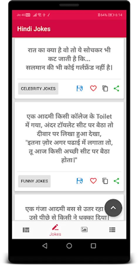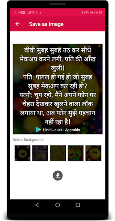 Best feature is that you can save text jokes as image with your favourite background given in app.