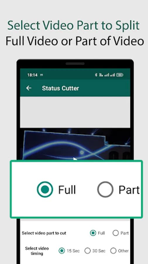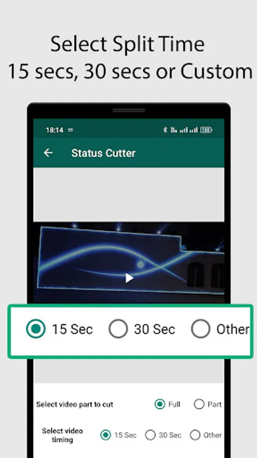 Cut and Post your complete video into 15 secs or 30 secs or Custom Time Video Slices by Video Status Cutter.